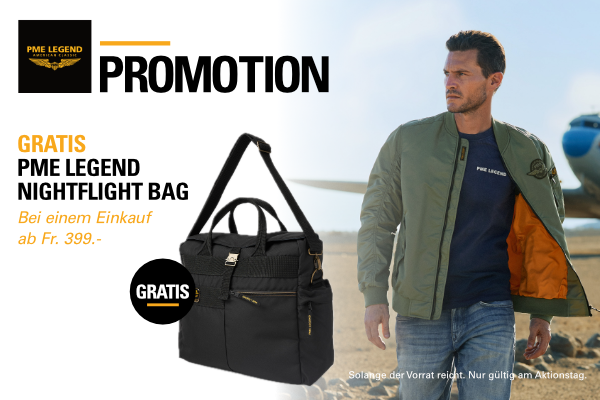 PME Legend Promotion am 28.03.2026: Beim Einkauf ab Fr. 399.– erhältst du die Nightflight Bag gratis dazu.